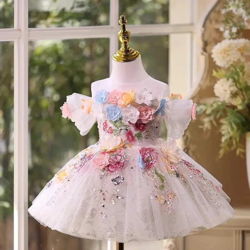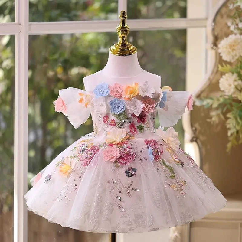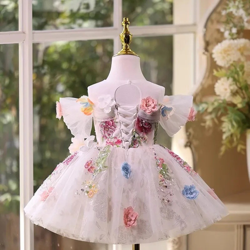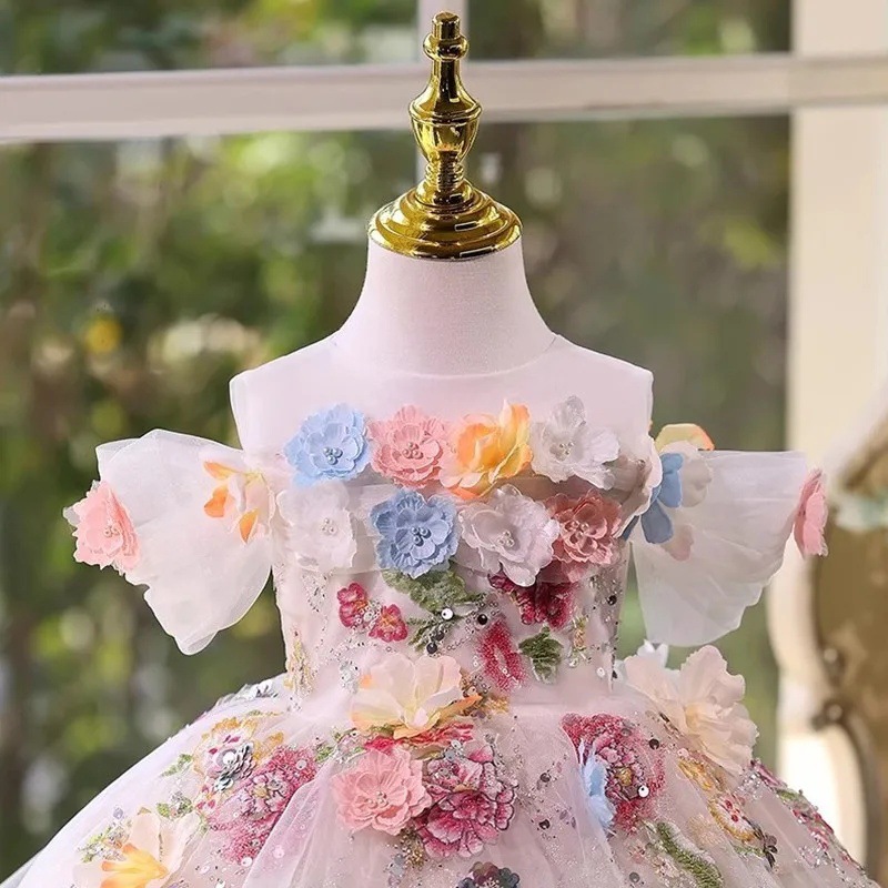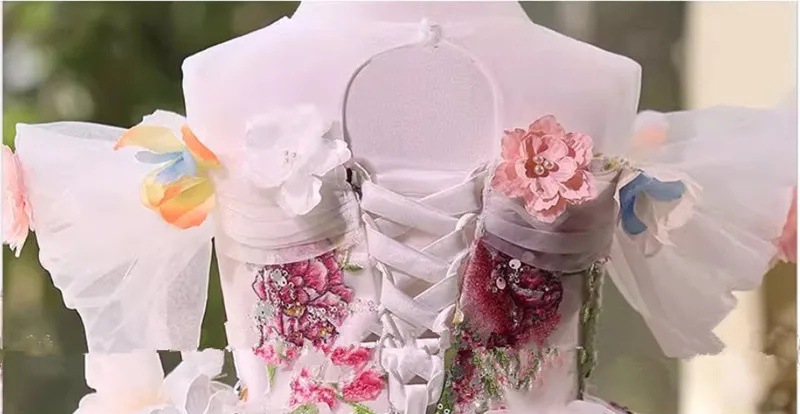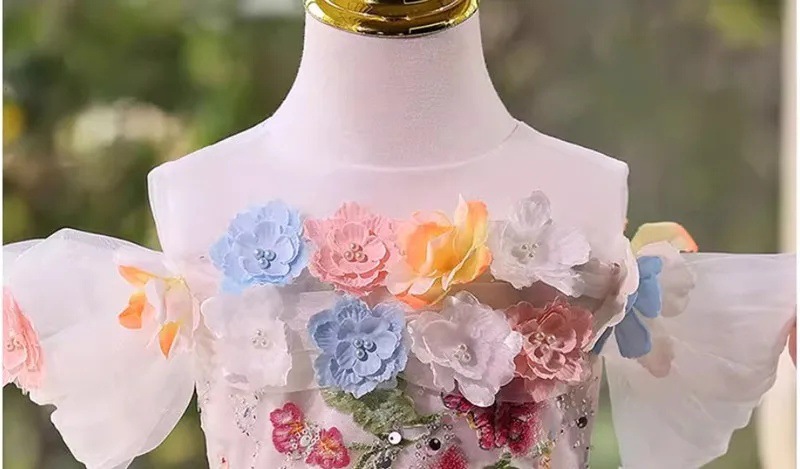 DISCLAIMER: Butterflies, flowers, and other elements are scattered throughout the dress in a random pattern. Please anticipate slight variations between the photo and the actual product.