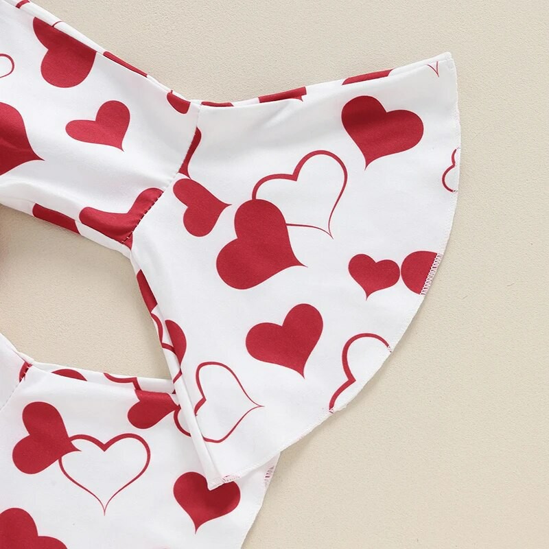 Valentine's Day Girl Baby Long Sleeved Romper Bell-bottom Pants Suit