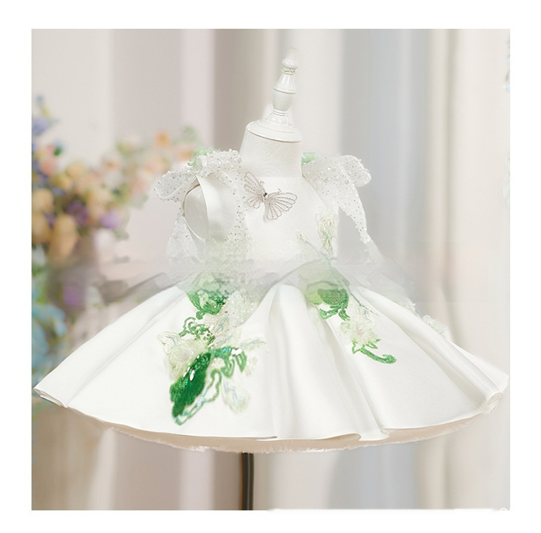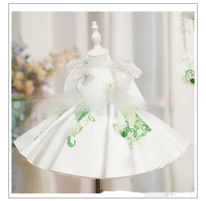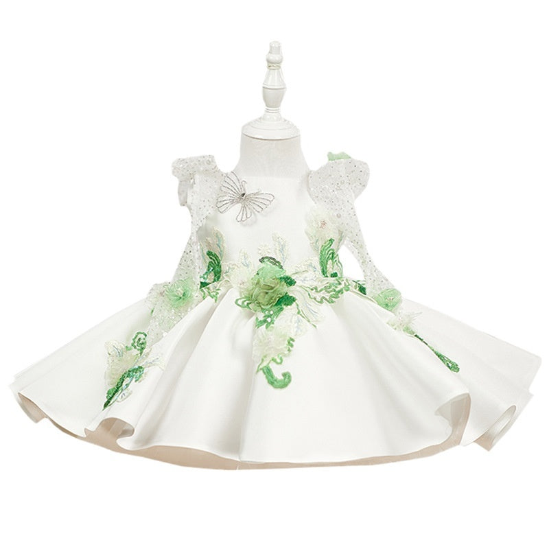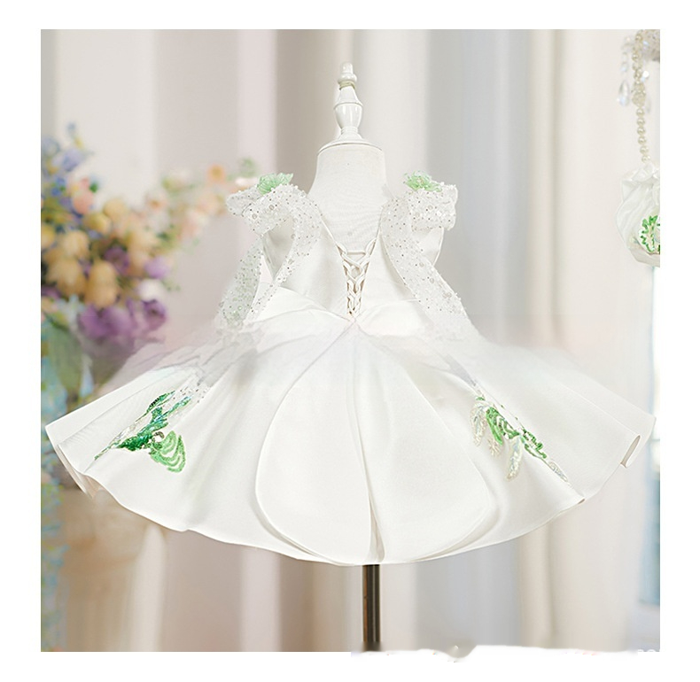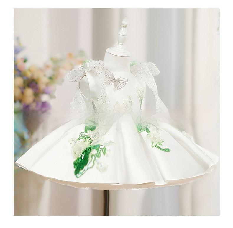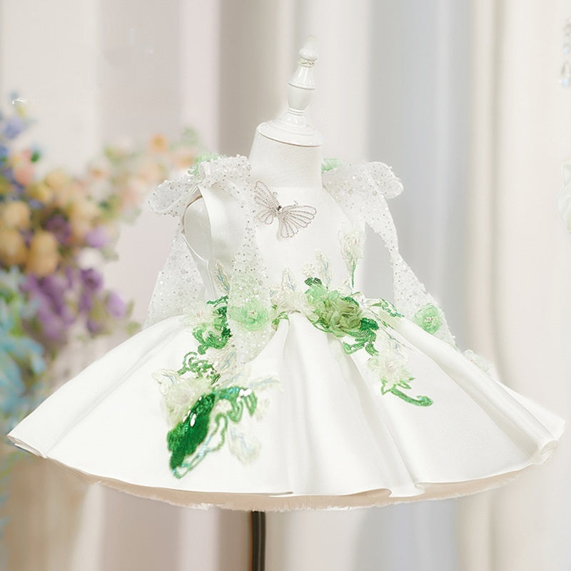 White Princess Puffy Skirt With Beaded Flowers