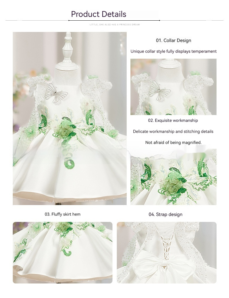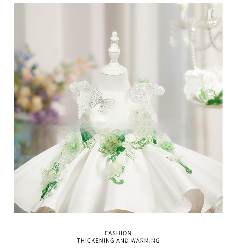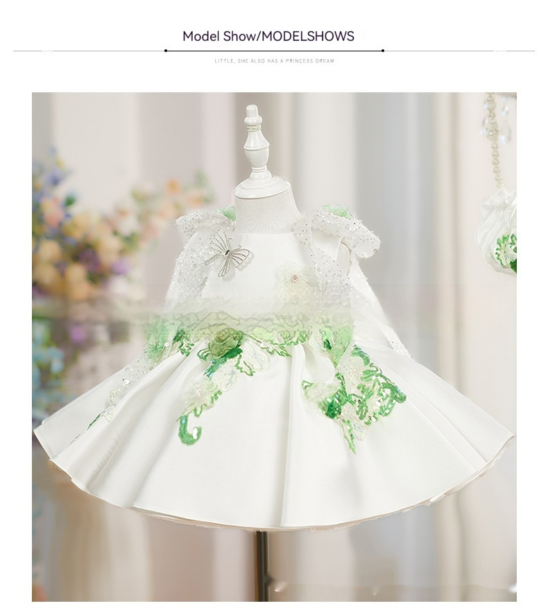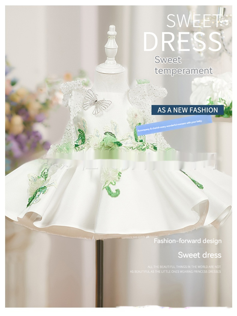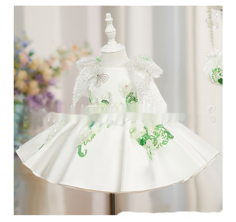 White Princess Puffy Skirt With Beaded Flowers